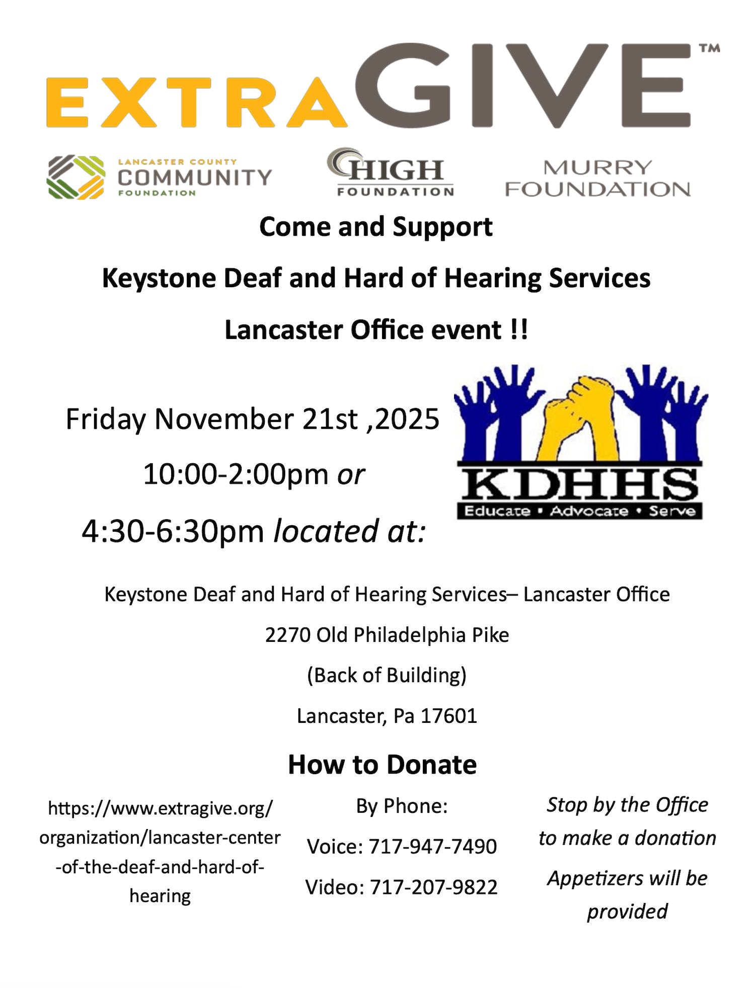 Where: Lancaster Center for the Deaf and Hard of Hearing